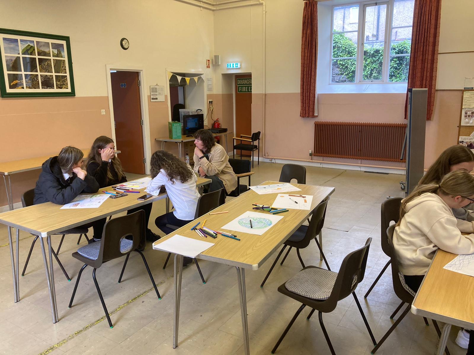 I designed and delivered the workshops for children at the local school Godre’r Berwyn, young adults from the local youth club, and the older members of Y Bala community at Awel y Coleg, an assisted living home, and a Paned a Sgwrs group, which meant my research for the piece spanned the generations of Bala locals. The people, places and ideas that I used to populate the mural all have value and importance and the mural was greatly received by the community! The design process was supported throughout by the Bala Community council who helped me to finalise the design that would rejuvenate Bala's town centre and brighten up this alleyway next to the Co Op on the high street. The project was funded by the Shared Prosperity Fund.