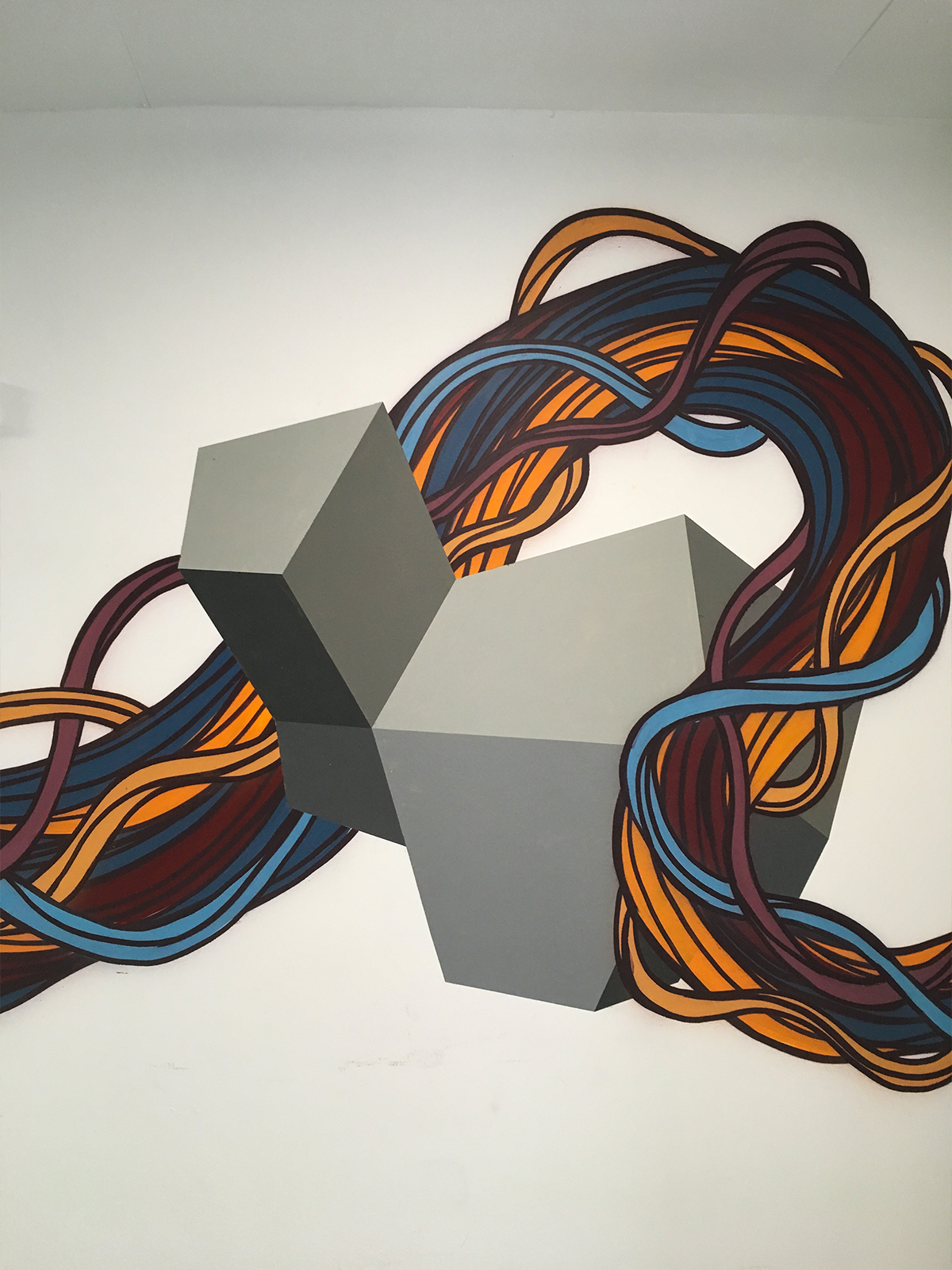 Commission, InteriorI was asked by the department for student wellbeing at Sheffield Hallam University if I could create a mural for their offices, situated in The Hubs building on the campus of the university. The brief was to create something that represented Sheffield and the life and vibrancy that the university brings to the city. This abstract representation takes inspiration from Sheffield’s brutalist architecture and industrial history, while the fluid form uses the university colours while remaining un-gendered to create an ebbing and flowing life source that brings colour and excitement.